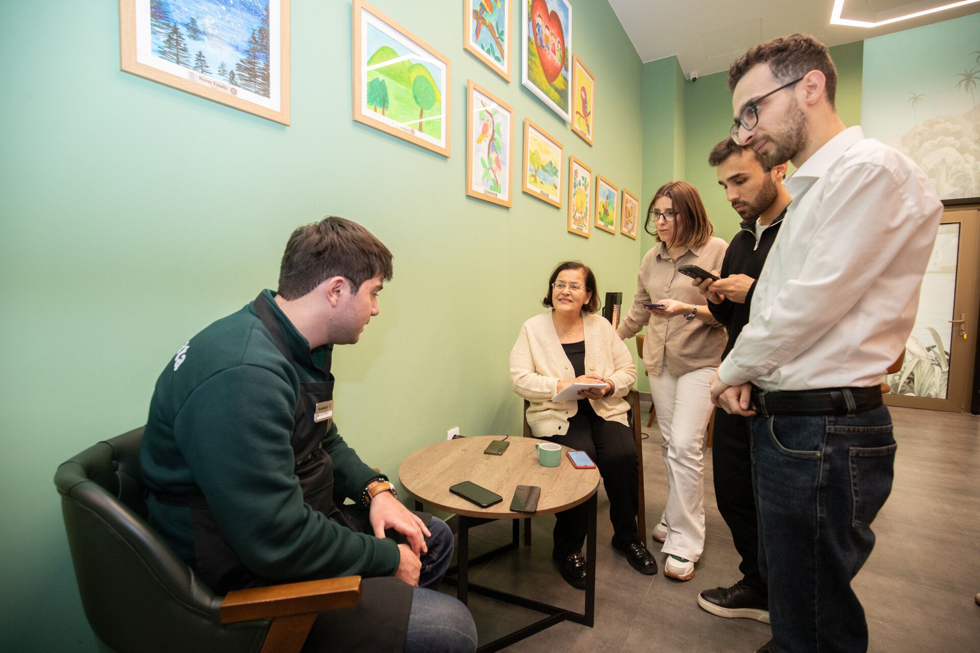 Söhbətimiz davam etdikcə kafedə çalışan gənclər öz dəstəkçi mentorları ilə birgə bizə yaxınlaşırlar. Onların hər biri bu gənclərin cəmiyyətə qazandırılmasında bir körpü rolunu oynayır: