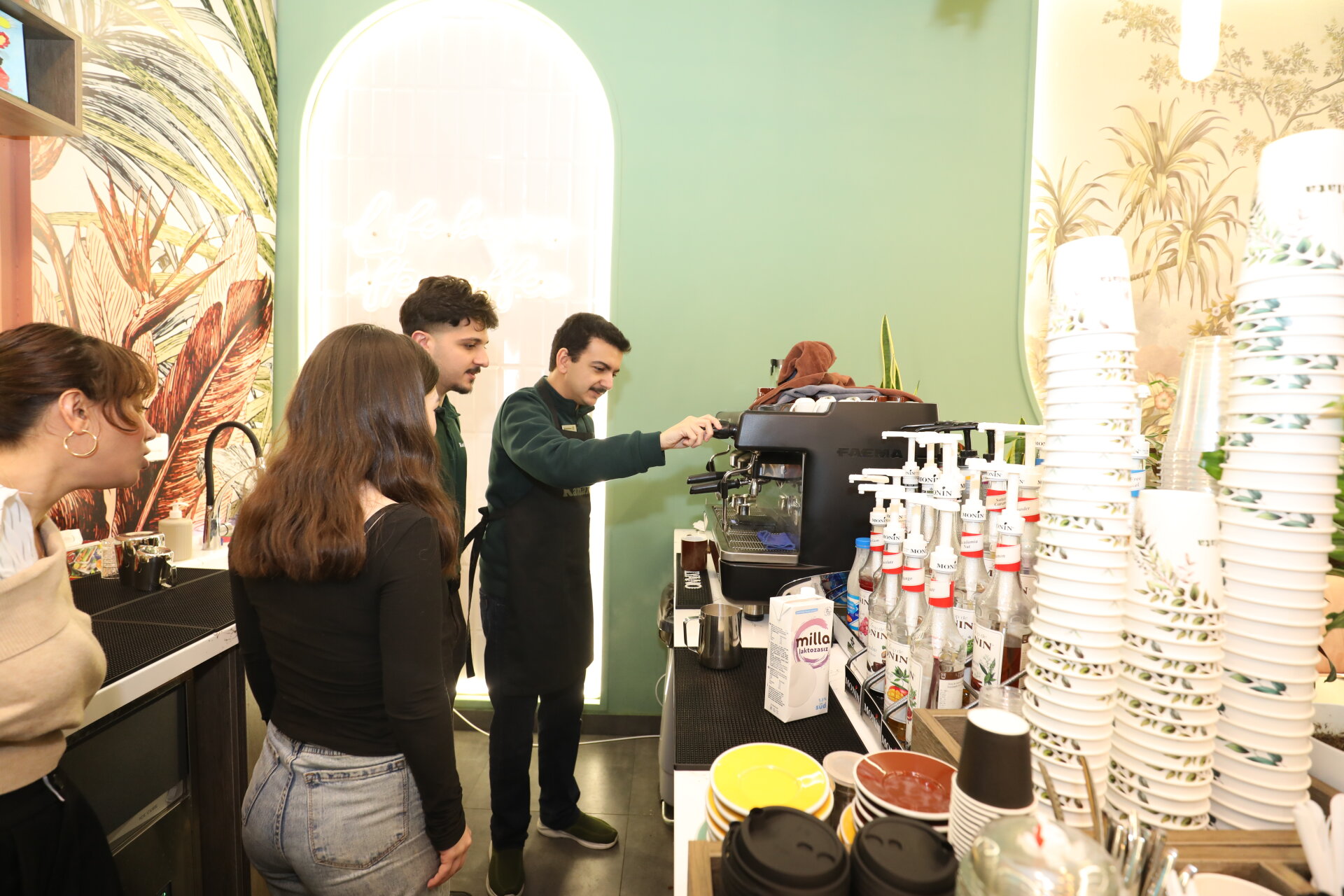 Daha sonra gənclərlə birlikdə barın arxasına keçirik. Birlikdə qəhvə hazırlayırıq.