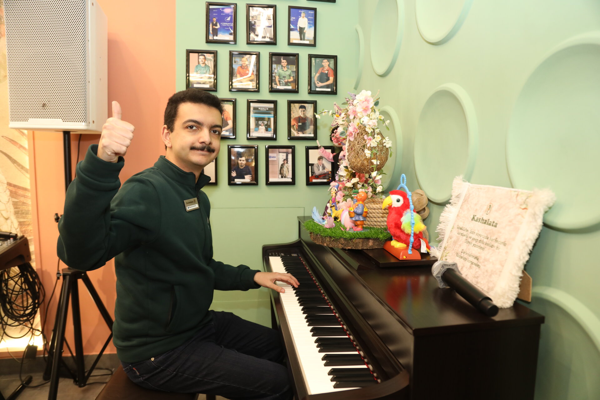 Əlisahib həm də tələbədir. Kafedəki işi ilə yanaşı dərslərinə də vaxt ayırır: “Mədəniyyət və İncəsənət Universitetində təhsil alıram, həm də paralel olaraq “Kashalata”da işləyirəm. Qonaqlara içki hazırlayıram, həmçinin pianoda da ifa edirəm”.