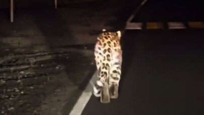 Rusiyada yolda gəzən bəbir hamını heyrətləndirdi -